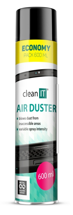 Stlačený vzduch, 600ml, určeno pro vyfoukávání prachu a nečistot ze špatně přístupných míst. Hořlavý.