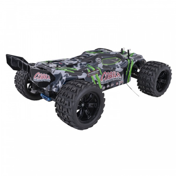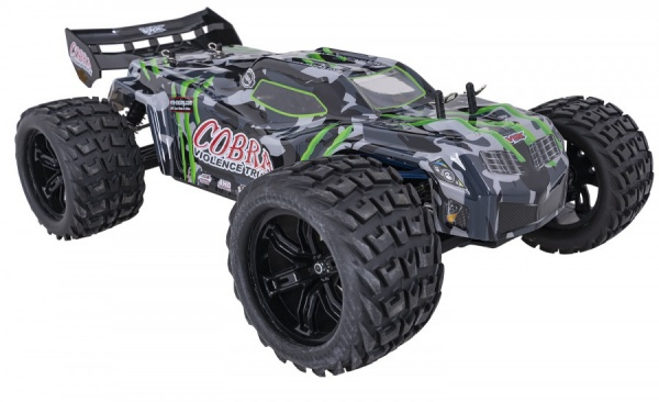 RC model je terénním autem, které je přizpůsobené pro rychlou jízdu, i přes nerovný terén. Pohon všech čtyř kol umožňuje zvládání náročných překážek. S kartáčovým motorem 590 a výkonným akumulátorem dosahuje model rychlosti až 40 km/h. S modelem si můžete užívat zábavu cca 20 minut.Bezdrátový ovladač pracuje na frekvenci 2,4 Ghz, je tedy možné ovládat několik modelů najednou, a to bez rušení signálu. Model dosahuje do vzdálenosti neuvěřitelných 100 metrů.Technické parametryRC model je vyroben v měřítku 1:8 a má rozměry: 485x 340x190 mm. Vůz dosahuje rychlosti 40 km/h a provozní doba je cca 20 minut – záleží na použité rychlosti. Rozchod kol činí 325 mm, velikost je 120 x 70 mm. Převodový poměr je 9, 7:1. Akumulátor modelu je baterie NIMH 8,4 V, 1800 mAh. Vysílač pracuje na frekvenci 2,4 Ghz a dosahuje do vzdálenosti 100 metrů. Potřeba je do ovládání dokoupit 4x AA baterie, které si můžete pořídit v našem obchodě.Obsah baleníModel – VRX Cobra RTRVysílačAkumulátor 8.4V 1800mAh NIMHNabíječkaManuál Obsah balení: Model - VRX Cobra Vysílač Akumulátor Nabíječka Technické parametry: Měřítko: 1/8 Konstrukce auta: buggy Délka auta: 49 Šířka auta: 34 Výška auta: 19 Auto je vhodné na ven: ano Auto je vhodné do interiéru: ne Typ motorů v autě: stejnosměrné Rychlost auta: 40 Kapacita akumulátoru v autě: 1800 Napětí akumulátoru v autě: 8.4 Typ akumulátoru do auta: Nimh Typ nabíječky: 230V Výměnný akumulátor v autě: ano Napájení ovladače k autu: 4xAA Doba jízdy auta: 20 Dosah ovládání auta: 200 Frekvence ovládání RC auta: 2,4Ghz Konstrukce ovladače k autu: Pistolový Plynulá regulace rychlosti: ano Plynulá řízení zatáčení: ano Voděodolnost (stříkající voda): ano Vodotěsnost (potopení): ne