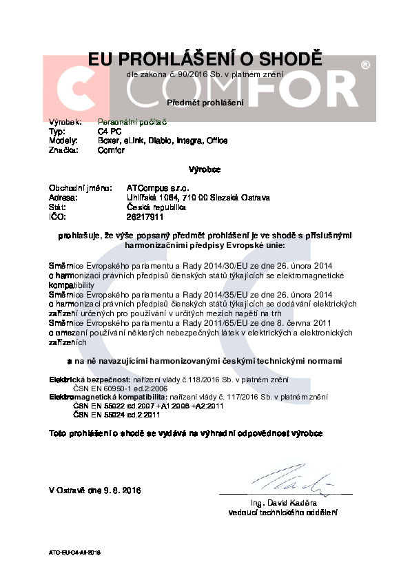 • počítač obsahuje nainstalovaný operační systém včetně továrního nastavení pro rychlou obnovu systému.