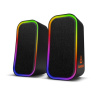 Reproduktory jsou vybaveny RGB Rainbow podsvícením a ovládáním hlasitosti/podsvícení/vstupu na kabelu.