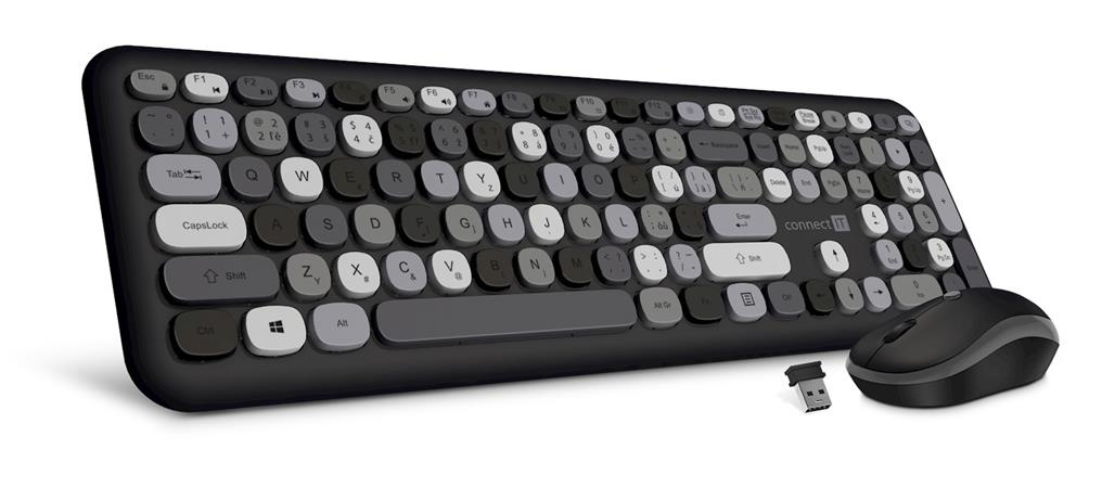CONNECT IT FASHION combo bezdrátová černo-šedá klávesnice + myš, (+1x AAA +1x AA baterie zdarma),USB, CZ + SK