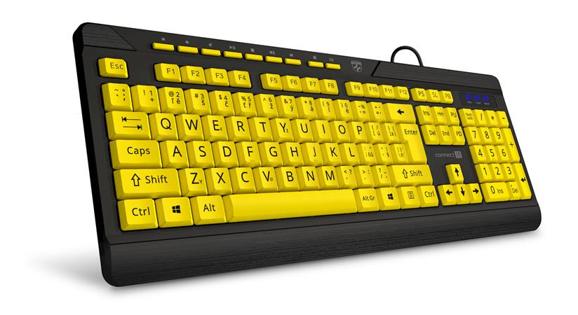 CONNECT IT FOR HEALTH CONTRAST klávesnice s velkým fontem, USB, CZ + SK verze, ŽLUTÁ/ČERNÁ