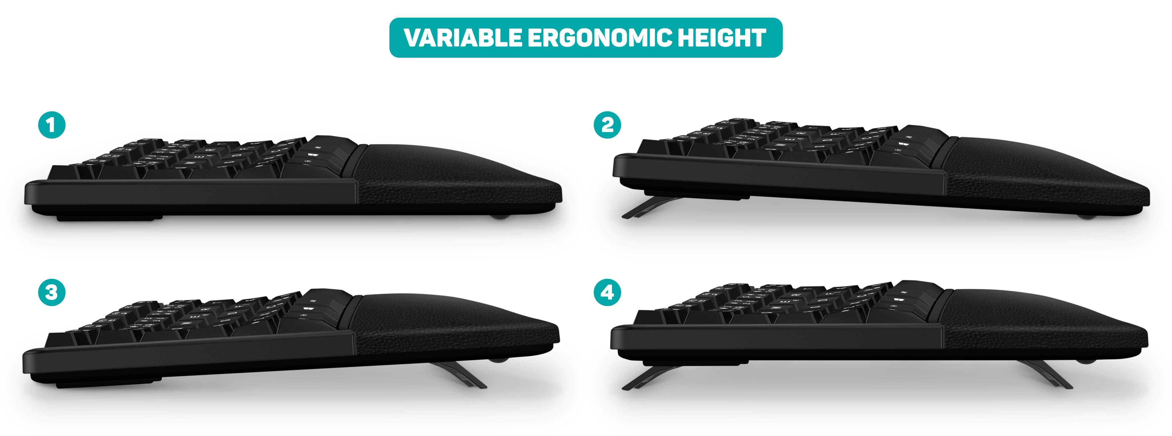 Klávesnice kromě klasických funkcí disponuje 24 multimediálními a funkčními klávesami, které se obzvláště hodí do kancelářského prostředí. Klávesnice disponuje opěrkou zápěstí s povrchem z měkké PU kůže, která snižuje únavu zápěstí a dlaně a je ideální pro dlouhodobou práci doma i v kanceláři. Příjemný ergonomický 4 polohový náklon klávesnice pomáhá proti únavě zápěstí během dlouhých pracovních relacích.