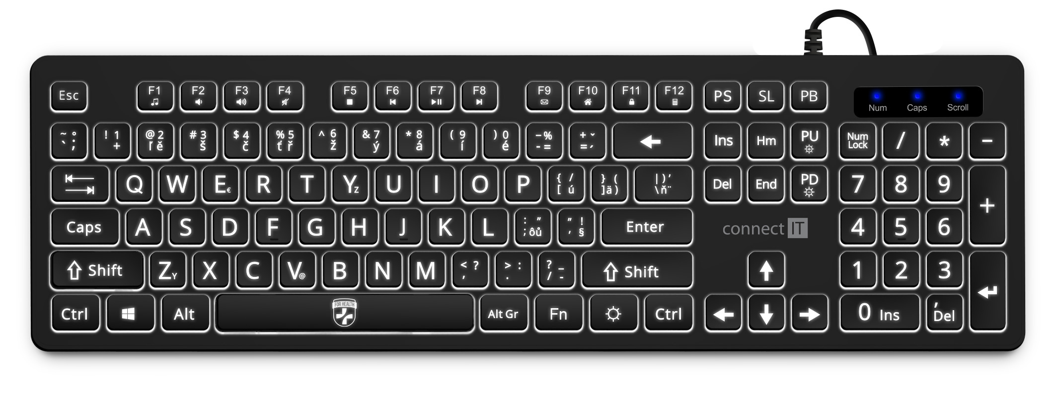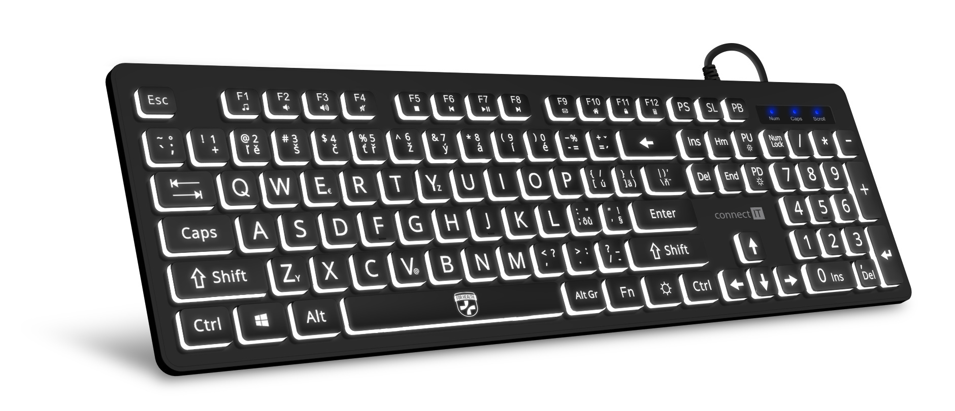Bílé podsvícení kláves