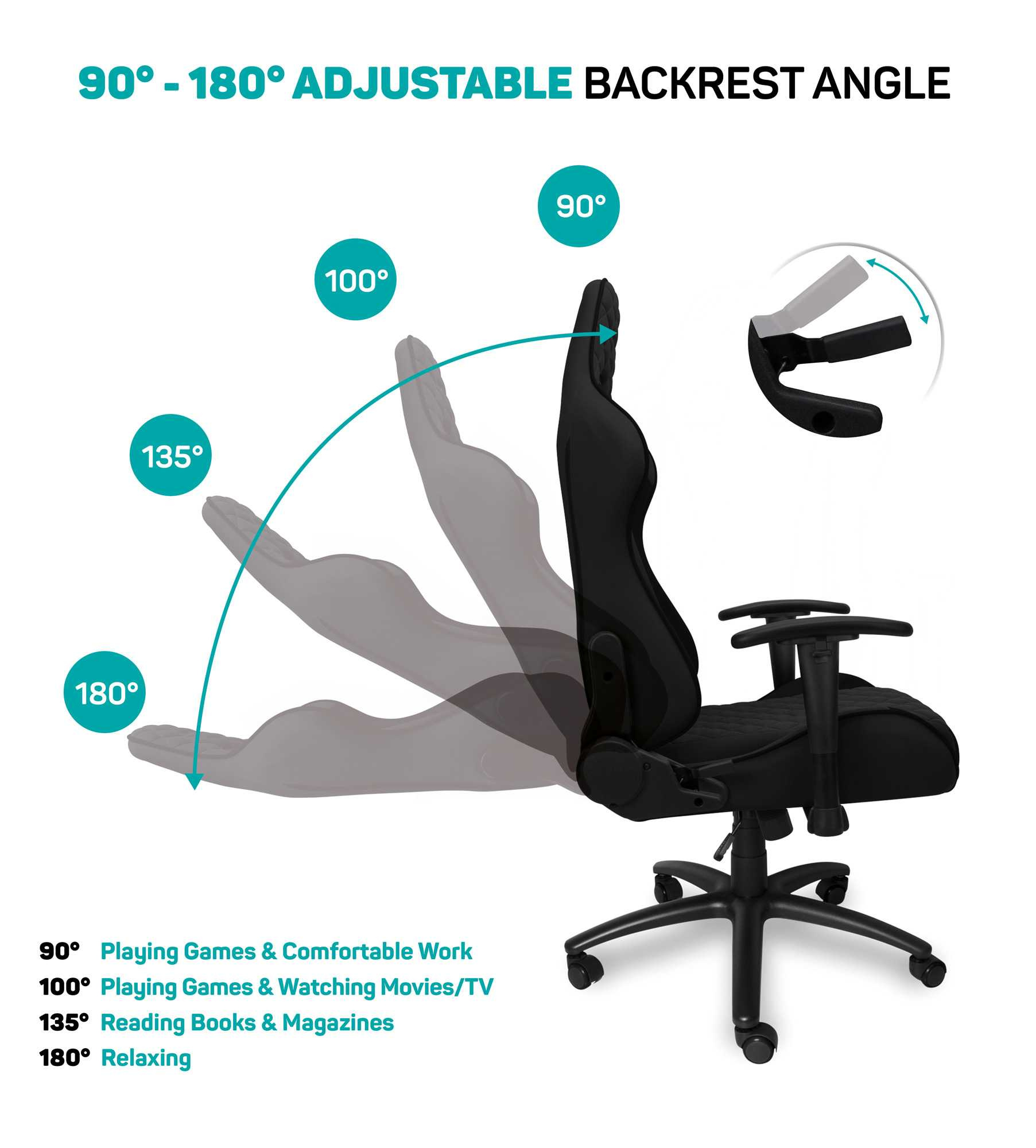 Plynule nastavitelný sklon opěradla v úhlu až do 180°