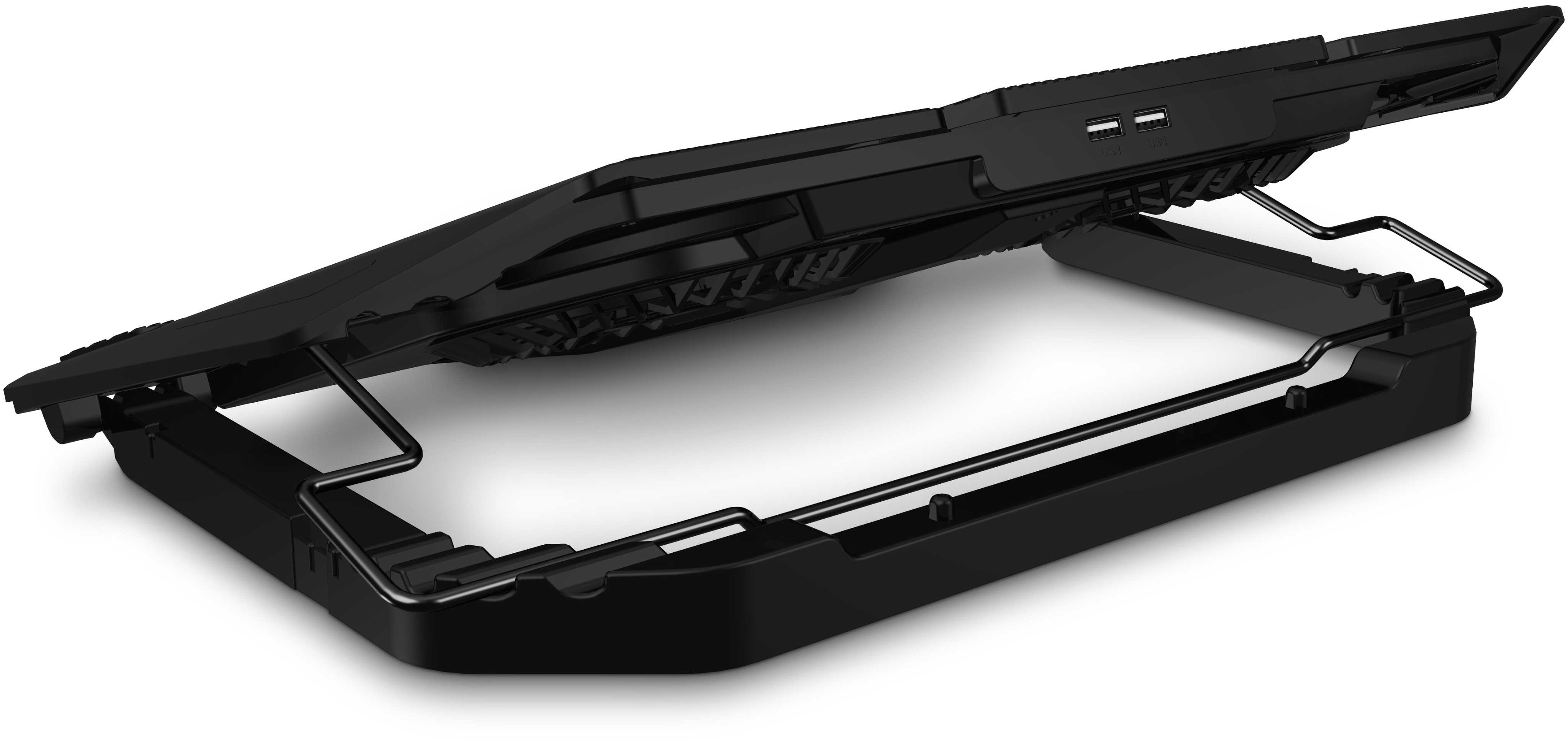 Podložka zajišťuje jak odvod tepla z notebooku a jeho ventilačních otvorů, tak i přímé ochlazování pláště notebooku díky cirkulaci chladného vzduchu a celkově tak zvyšuje výkon notebooku. Je plně kompatibilní s notebooky až do velikosti 17" a je předurčena jak pro práci doma tak i v kanceláři. Ultratichý chod 2 ventilátorů vás nebude rušit ani při nejnáročnější práci vyžadující maximální soustředění. Výšková polohovatelnost v 5 různých stupních vám zajišťuje maximální pohodlí i při delších pracovních či herních sezeních.