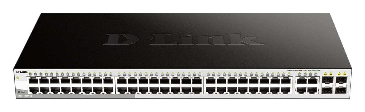Již páta generace Gigabit Smart přepínačů D-Link řady DGS-1210 (v prodeji od roku 2018) nabízí výkonnější hardware, větší flexibilitu portů a více funkcí. Model DGS-1210-52 (HW revize F1) je 52-portový L2/L3 Gigabit Ethernet Smart+ Managed switch bez větráků, vhodný pro SMB a přístupové Enterprise sítě. Je osazen 48 porty 10/100/1000Base-T RJ-45 a 4x Gigabit Combo porty RJ-45/SFP, kde SFP sloty jsou dvourychlostní a podporují Gigabit SFP i Fast Ethernet SFP moduly.