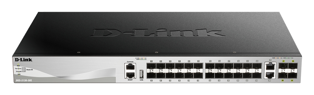 DGS-3130-30S L3 Stackable Managed switch, 24x SFP, 2x 10G RJ-45, 4x 10G SFP+