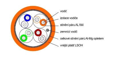 - stíněné provedení S/FTP (Oplet celkově, jednotlivé páry AL fólií)