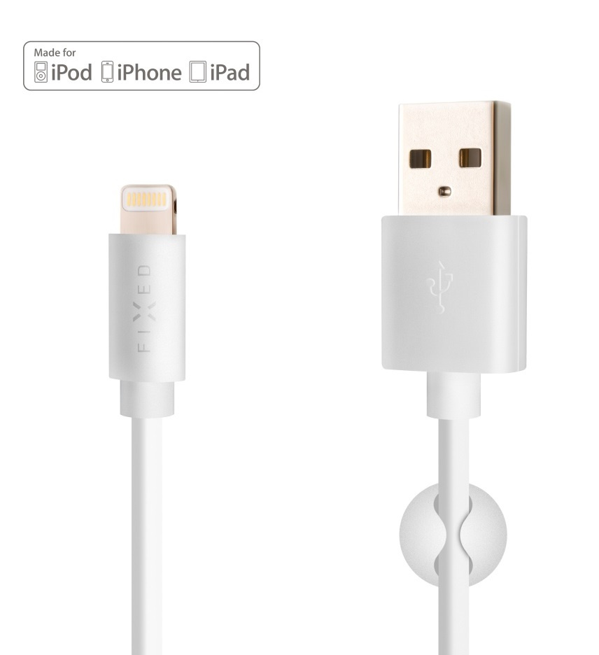 Datový a nabíjecí kabel FIXED s konektory USB/Lightning, 1 metr, MFI certifikace, bílý