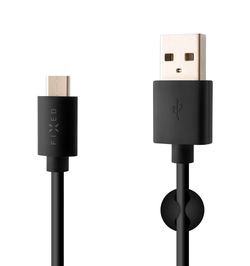 Datový a nabíjecí kabel FIXED s konektory USB/USB-C, USB 2.0, 1 metr, černý