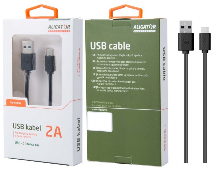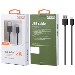 Datový kabel , USB-C, 2A, 1m, prodloužený konektor 9mm, černý