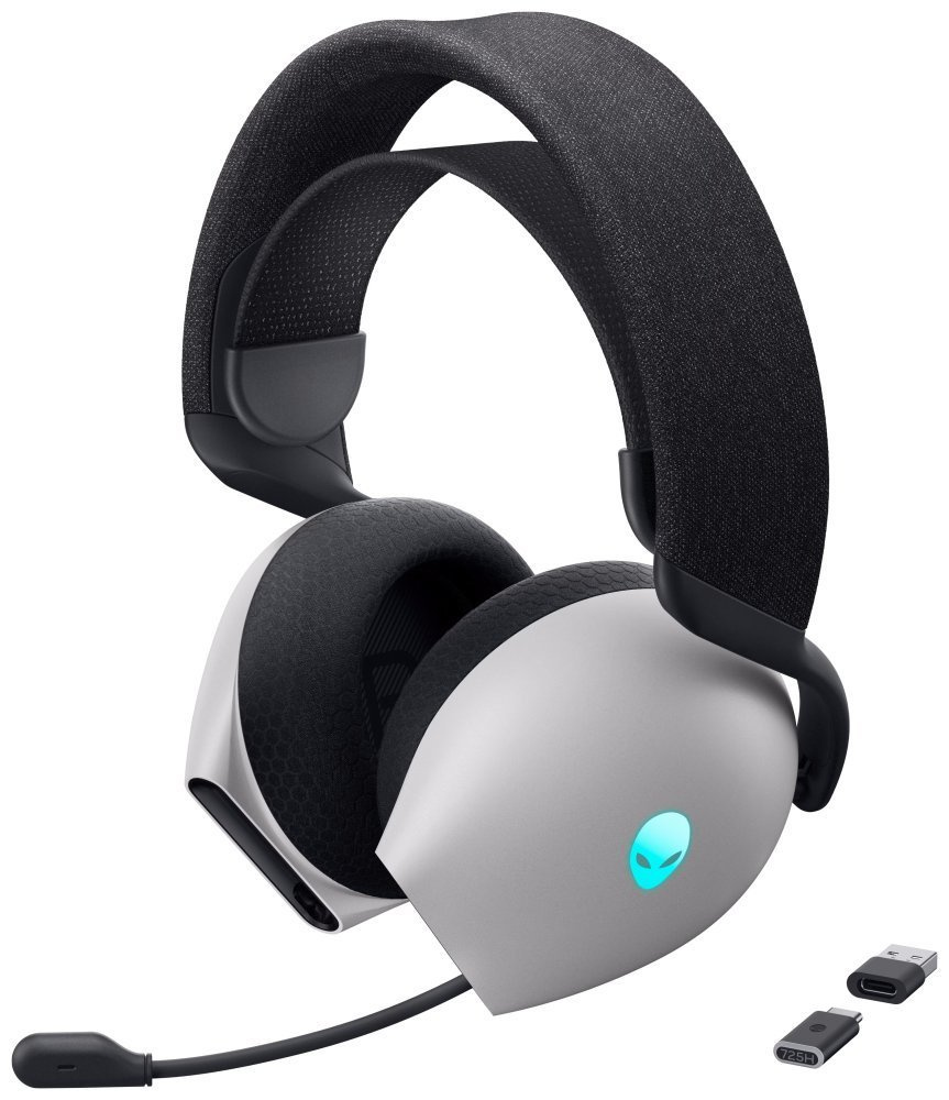 Herní náhlavní headset poskytující bohatý a čistý zvuk díky 40mm Hi-Res měničům a prostorovému zvuku Dolby Atmos. Stejně tak výsuvný mikrofon poskytuje křišťálově čistý přenos s AI potlačením šumu, který je základem kvalitní hlasové komunikace. Měkké náušníky z paměťové pěny s prodyšným látkovým potahem a nastavitelný hlavový most zajistí dlouhé hodiny hraní či poslechu v nejvyšším komfortu. Zajisté potěší také nastavitelné podsvícení AlienFX ve škále až 16,8 milionů barev, tlačítko pro ztlumení mikrofonu či kolečko pro nastavení hlasitosti umístěné přímo na sluchátkách. Připojení k počítači lze realizovat hned třemi způsoby: skrze Bluetooth, USB-C adaptér a bezdrátovou technologii 2,4 GHz nebo konektor 3,5 mm jack. Vestavěná baterie zajistí až 75 hodin provozu.
