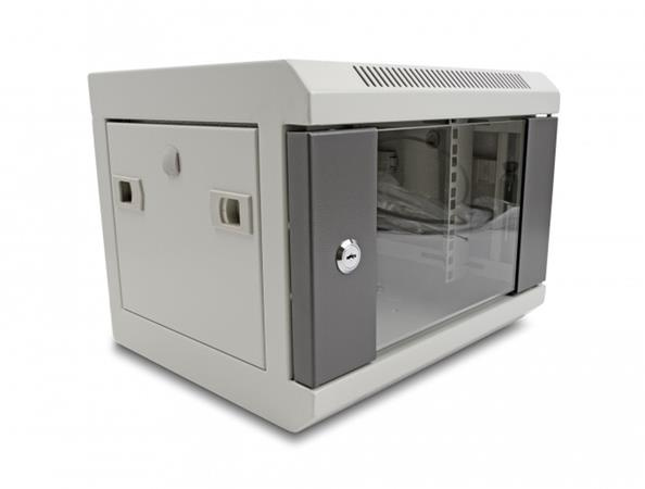 Tuto síťovou skříň značky Delock lze použít k postavení nebo k montáži na stěnu a je ideální k instalaci zařízení rozměru 10”, jako například patch panelů.