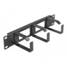 Delock 10” vyvazovací panel pro správu kabelů, 2 otvory a 3 háčky, 1U, černý