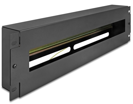 Delock 19” Jističová lišta s krytem a DIN lištou, 3U, černá šedá