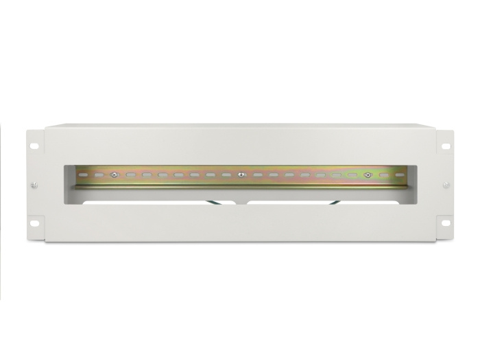 Delock 19” Jističová lišta s krytem a DIN lištou, 3U, kovově šedá