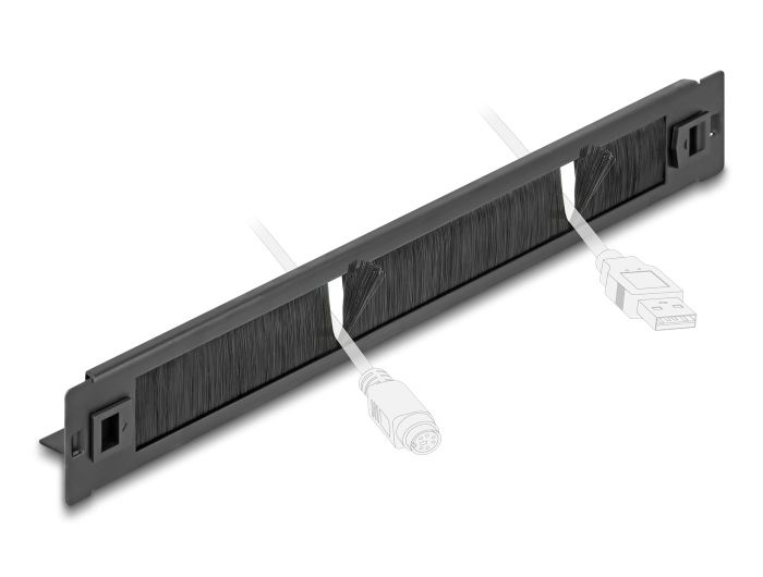 Tento kartáčový pruh značky Delock je vhodný k instalaci do síťové skříně rozměru 19”.