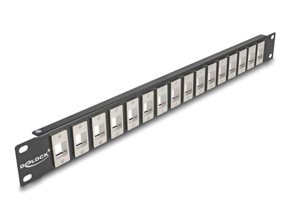 Delock 19” Keystone Patch Panel, 16 portů, 1U, černé