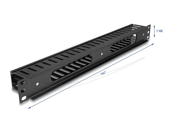 Delock 19” Management panel pro správu kabelů, se 2 otvory, 1U, kov / plast, černý