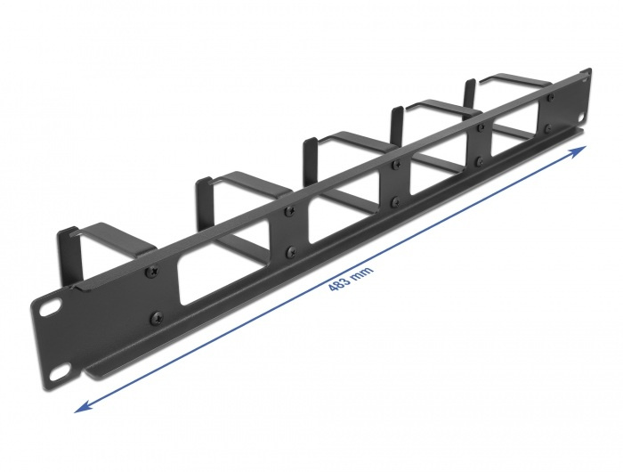 Delock 19” vyvazovací panel pro správu kabelů, 4 otvory a 5 háčky, 1U, černý