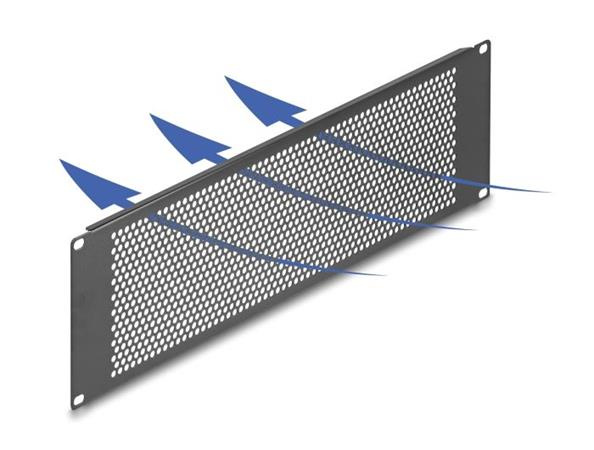 Tento panel značky Delock je vhodný k instalaci do 19” síťové skříně. Uzavírá otevřené plochy v síťové skříni.