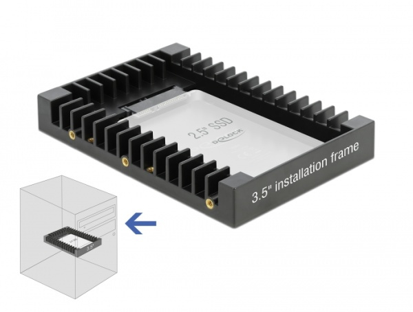S tímto instalačním rámečkem od Delocku můžete nainstalovat 2.5” jednotku, jako je SSD nebo HDD, do 3.5” pozice vašeho PC. Rozsáhlé možnosti instalace umožňují bezpečné upevnění rámečku.