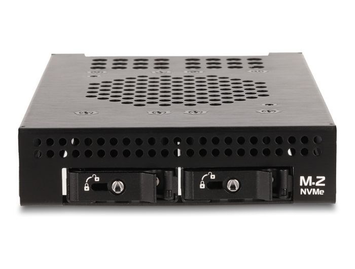 Tento pevný kovový mobilní rack značky Delock lze nainstalovat do 3.5” pozice na PC a poskytuje dva sloty M.2 ve formátu 2280, 2260, 2242 nebo 2230.