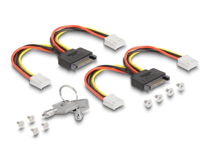 2 x kabely SATA, 15 pinové, na 2 x 4 pinové zásuvky disketové mechaniky, délka cca. 12 cm