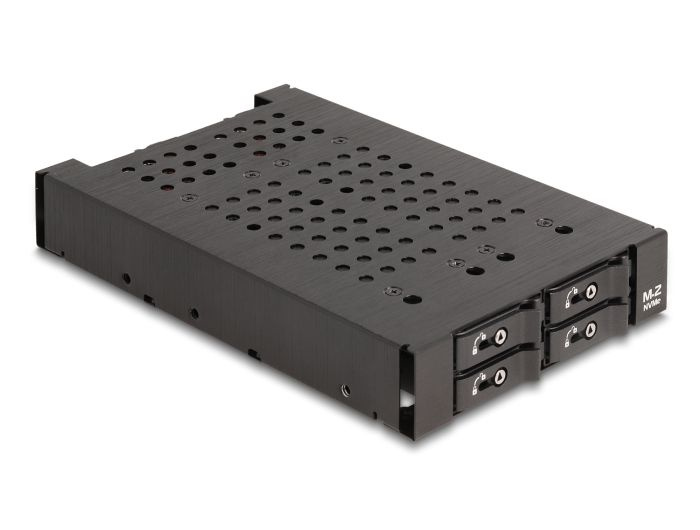 Tento pevný kovový mobilní rack značky Delock lze nainstalovat do 3.5” pozice na PC a poskytuje čtyři sloty M.2 ve formátu 2280, 2260, 2242 nebo 2230.