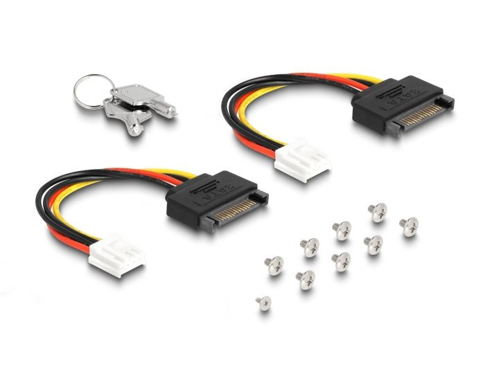 2 x kabely SATA, 15 pinové, na 4 pinové zásuvky disketové mechaniky, délka cca. 12 cm