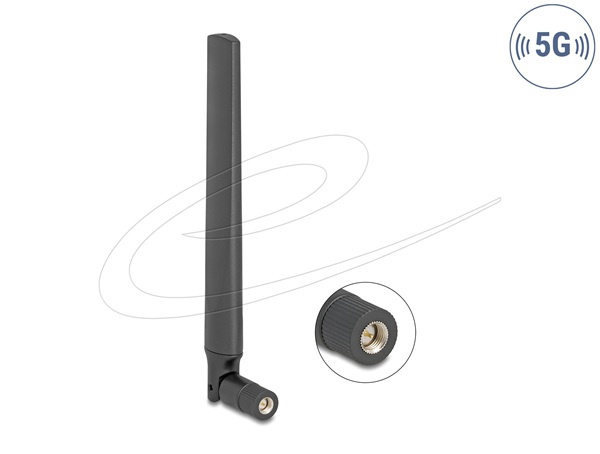 Delock 5G 3,4 - 5,0 GHz anténa SMA samec 4,7 dBi všesměrová s nakloněným kloubem černá