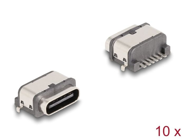 Delock 6-pinový SMD konektor z USB 5 Gbps na zásuvku USB Type-C™ se dvěma kovovými západkami k montáži pájením, 10 ks