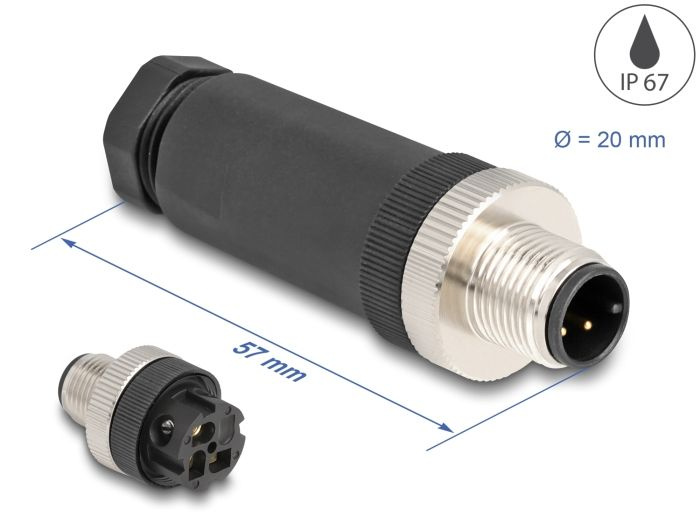Tento konektor značky Delock lze použít k připojení kabelu šroubovým koncovým spojením s konektorem M12, např. za účelem ovládání strojů nebo automatizace.