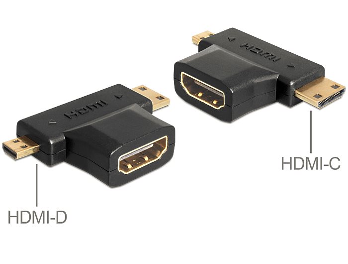 Tento HDMI adaptér od Delocku umožňuje připojit zařízení s mini HDMI-C nebo micro HDMI-D rozhraním, za použití příslušného HDMI kabelu.