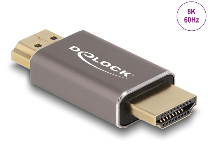 Delock Adaptér HDMI, ze zástrčky na zástrčky, 8K 60 Hz, šedá kovová