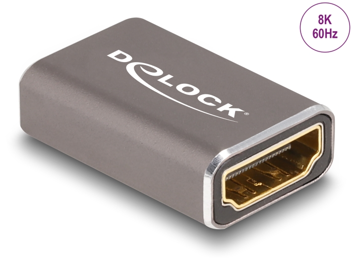 Delock Adaptér HDMI, ze zásuvku na zásuvku, 8K 60 Hz, šedá kovová