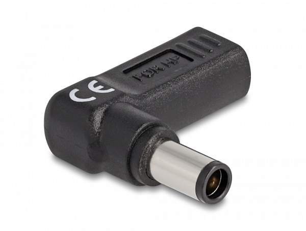 Delock Adaptér na kabel na nabíjení laptopu, ze zásuvky USB Type-C™ na zástrčku HP 7,4 x 5,0 mm, úhlový 90°