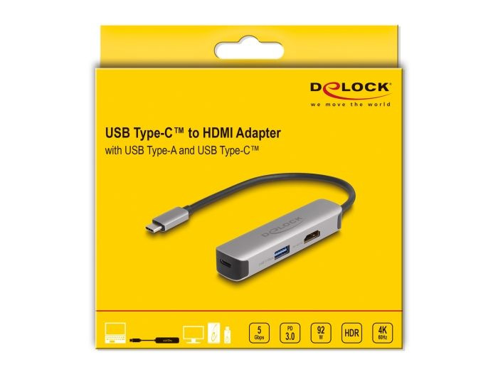 Delock Adaptér USB Type-C™ na HDMI 4K, 60 Hz, s PD USB Typu-A a USB Type-C™ Data + PD 92 W