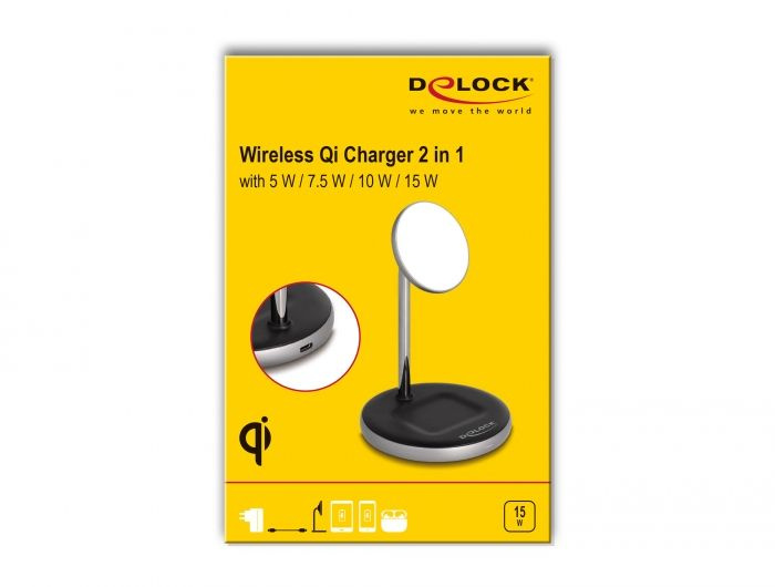 Delock Bezdrátová nabíječka 2 v 1 o výkonu 5 W / 7,5 W / 10 W / 15 W - Qi