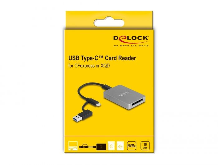 Delock Čtečka karet s rozhraním USB Type-C™ v hliníkovém krytu na paměťové karty CFexpress nebo XQD