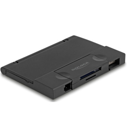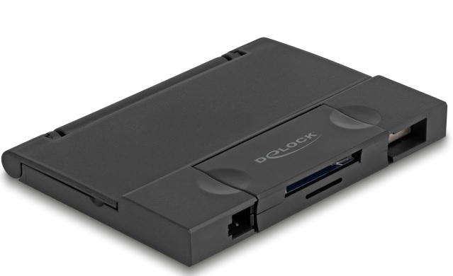 Tato čtečka karet od Delocku má dva paměťové sloty a umožňuje číst a zapisovat na různé SD, MMC a Micro SD paměťové karty. Čtečka karet může být připojena k PC nebo mobilnímu zařízení přes rozhraní USB Type-C™ nebo USB Typ-A.