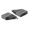 Tato čtečka karet od Delocku má dva paměťové sloty a umožňuje číst a zapisovat na různé SD, MMC a Micro SD paměťové karty. Čtečka karet může být připojena k PC nebo mobilnímu zařízení přes rozhraní USB Type-C™.