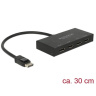 Tento splitter od Delocku příjmá Displayport signál z PC nebo notebooku a rozděluje jej do čtyř připojených displejů. Proto lze jedním Displayport připojením provozovat čtyři Displayport monitory. Výstupy umí duální režim (DP++), takže HDMI nebo DVI monitory mohou být připojeny vhodnými adaptéry.