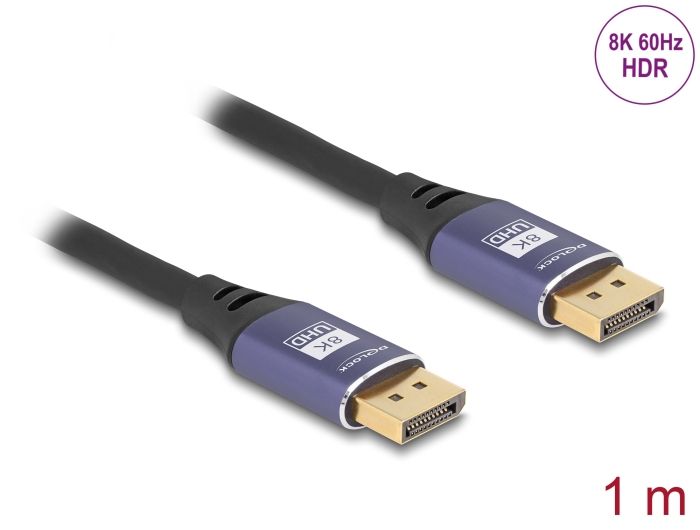 Delock DisplayPort kabel 8K 60 Hz 1 m lila kovový