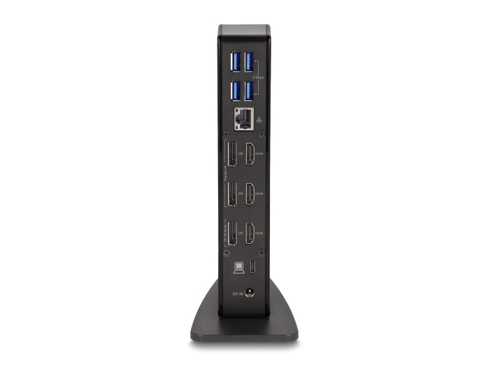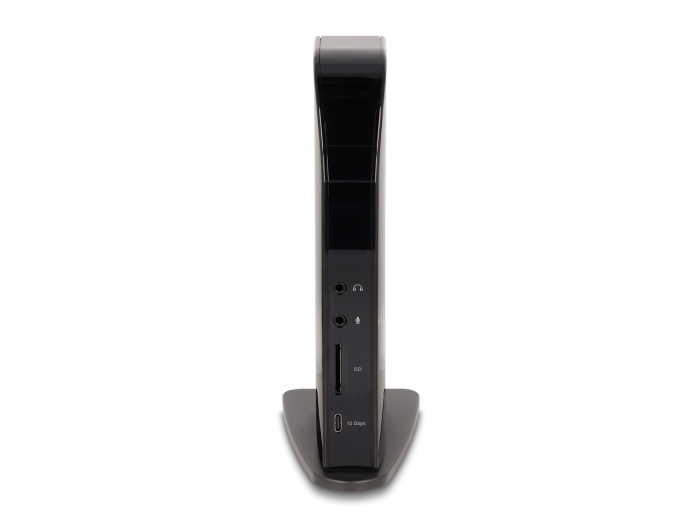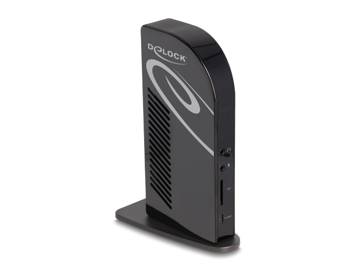 Vzhledem k vertikální instalaci zabírá dokovací stanice Delock méně místa na stole.