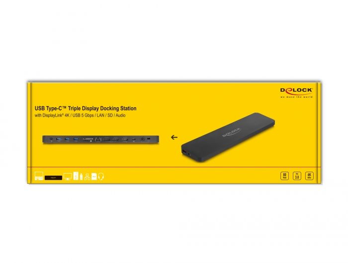 Delock Dokovací stanice pro tři displeje USB Type-C™ s rozhraním DisplayLink® 4K / USB 5 Gbps / LAN / SD / Audio / PD 80