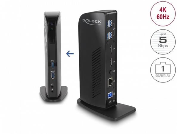 Delock Dokovací stanice USB, duální DisplayPort, 4K / USB 3.2 / LAN / Audio (Displaylink)