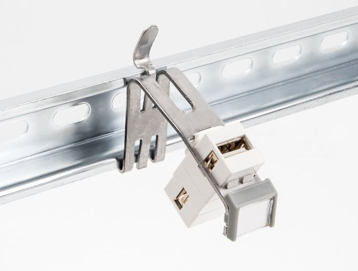 Tento držák Keystone značky Delock lze montovat na DIN kolejnici šířky 35 mm. S těmito standardizovanými rozměry je vhodný pro snadné uchycení jednoho Keystone modulu.
