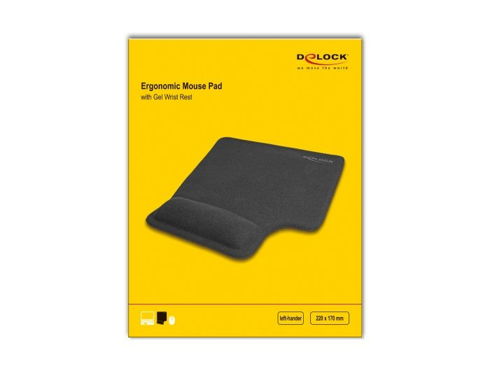 Delock Ergonomická podložka pod myš s gelovou podložkou zápěstí, pro leváky, černá